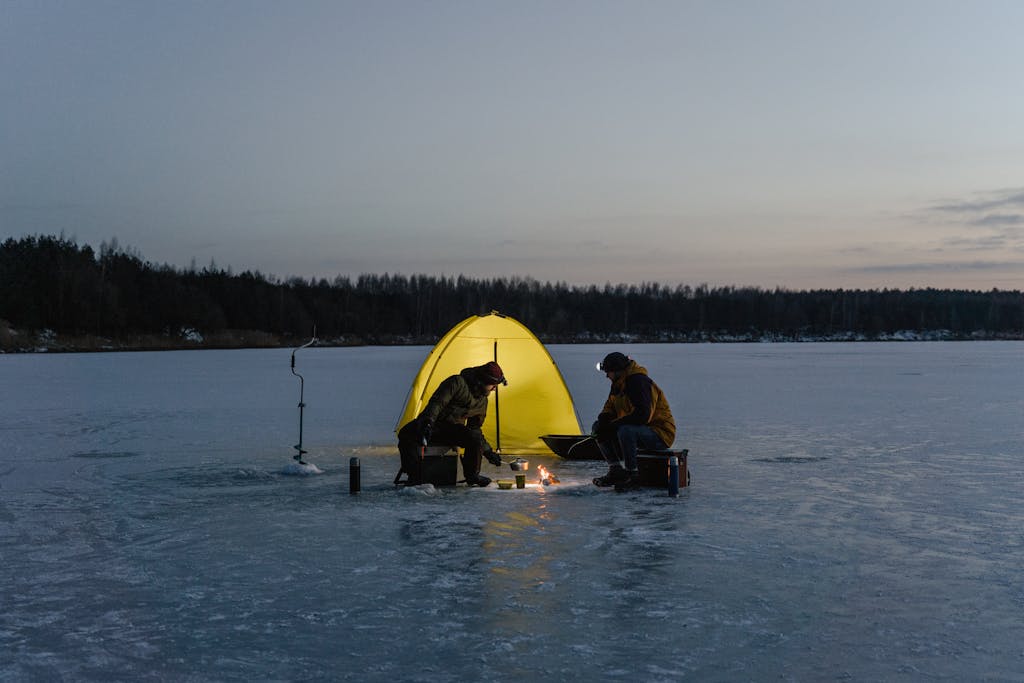 Trocar experiências e técnicas com outros pescadores de inverno.